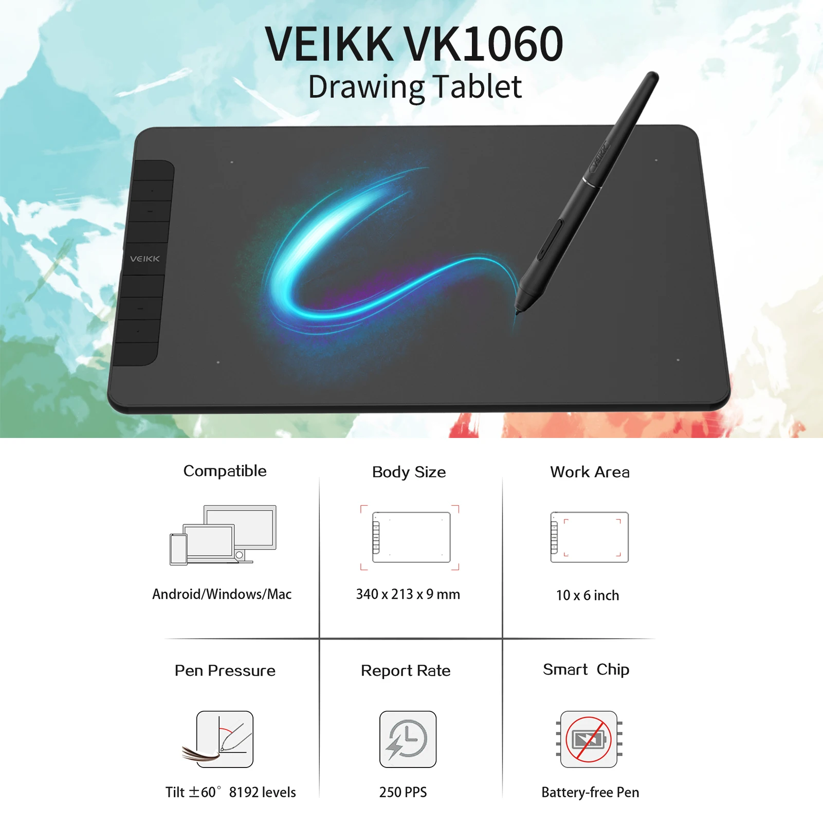 Veikk Vk1060 Graphics Drawing Tablet 10 X 6 Inch Active Area 8192 Levels Pressure Tilt Function Art Animation Drawing Board Digital Tablets Aliexpress